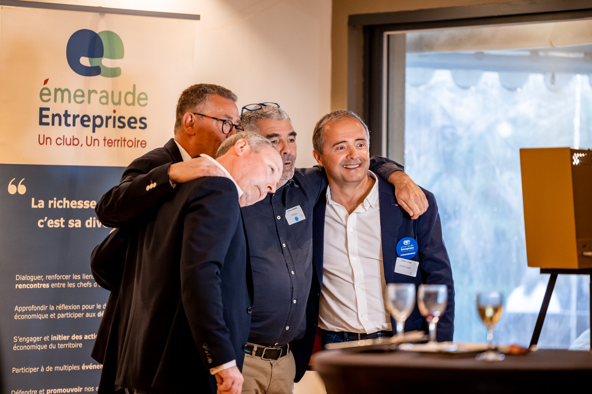 Nous avons également exprimé notre profonde gratitude à Sabrina Glatre notre ancienne présidente, ainsi qu’à Didier Guitton et Patrick Leroyer, deux membres dévoués et infatigables du club qui vont laisser la place à quatre nouveaux administrateurs : : Sylvie Bondil des Glaces Moustache (St Malo), Ulrich Douilly d’Umciad (Trevon), Jean-Michel Jolivet de TRIDIMENSION (St Malo) et Jean-Philippe Lemoine des Établissements Lemoine (Taden). Leurs expériences variées de chefs d’entreprise, leurs expertises spécifiques et leur connaissance du territoire permettront de renforcer la gouvernance, encourager l’innovation et permettront à Emeraude Entreprises de continuer à être le Club qui compte sur le territoire